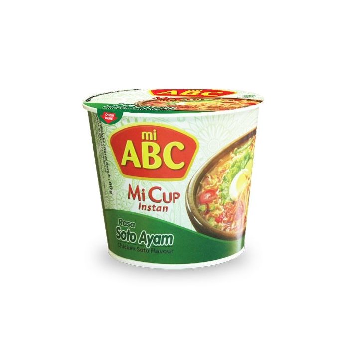 ABC Mi Cup instant noodles met kip soto smaak. Per 60 gram.