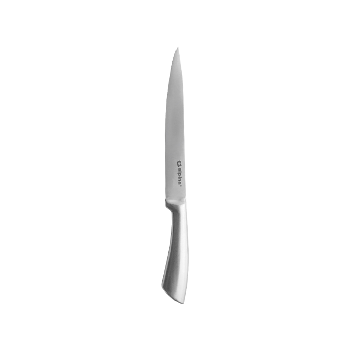 Houd je van kokkerellen en sta je graag in de keuken? Dan is dit fraaie vleesmes (lengte circa 33,5cm) van Alpina een echt cadeautje. Dit vlijmscherpe mes is perfect voor het snijden van vlees, vis en gevogelte.