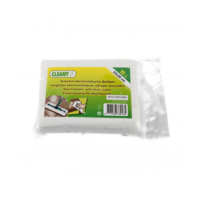 Antistof electrostatische doekjes van Cleany voor droog gebruik en trekt stof aan als een magneet. Ideaal voor gladde vloeren. Een doek heeft een afmeting van 22x28cm en is verpakt per 10 stuks.