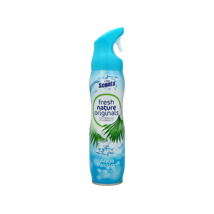 Laat je toilet heerlijk ruiken met de At Home Aqua Passion luchtverfrisser. Deze luchtverfrisser met geurnoten van bergwind, citrusvruchten en hout is makkelijk te doseren met de drukknop.
