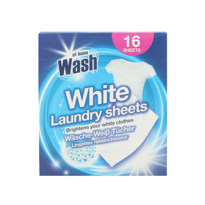 Het kan een uitdaging zijn om witte stoffen mooi, helder wit te houden. At Home Wash is er om te helpen! Gooi gewoon een wit waslaken in de machine, stapel de lading erop en het waslaken zal de stof zachtjes opvrolijken zonder deze te beschadigen. Elke verpakking bevat 16 vellen.