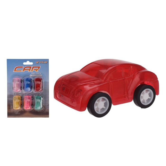 Set van 6 stoere pull-back/terugtrek auto's om mee te rijden waar je maar wilt. Trek de autootjes naar achter en kijk welke auto het verst komt. Leuk om uit te delen tijdens een kinderfeestje!