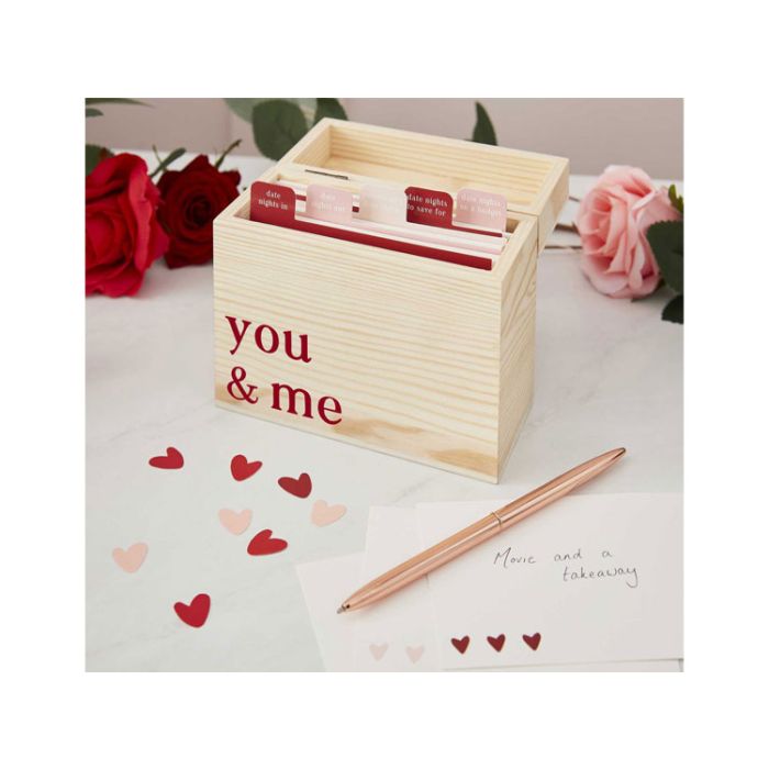 Wil je een romantische avond plannen met je partner? Dan is deze houten Date Night Box van Ginger Ray iets voor jullie! Schrijf op de kaarten leuke ideeën voor een romantische avond en wijs ze toe aan een van de date categorieën. Deel ze vervolgens met elkaar. De Date Night Box is 13,5x11,5cm groot en wordt geleverd met maar liefst 75 kaarten.