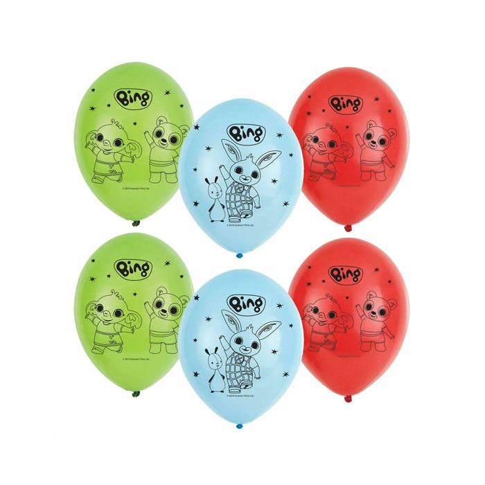 Vrolijke Bing latex ballonnen in de kleuren blauw, rood en groen. Eén set bevat 6 ballonnen.
