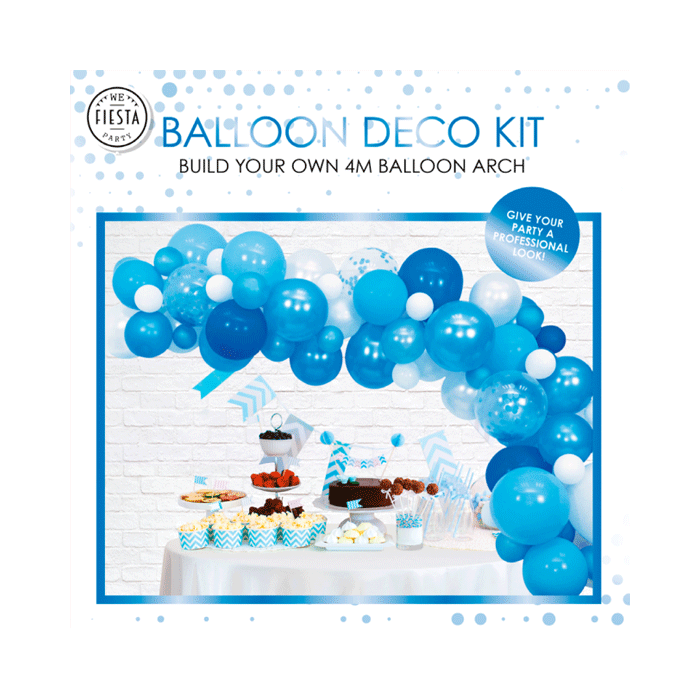 Schitterende DIY ballonnenboog. In dit blauwe ballonnenboog set zitten 70 ballonnen in de kleuren blauw, transparant en wit. Daarnaast worden 4 meter ballon tape en 40 lijmstippen geleverd om de ballonnen bij elkaar te houden.