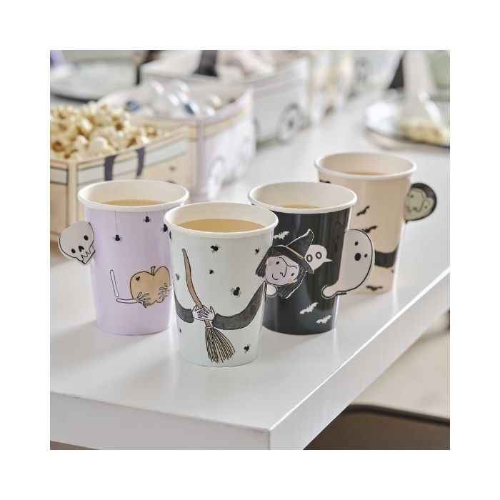 Dek de tafel, verzamel het hele gezin en sluit je aan bij deze Boo Crew-personages voor een leuk feestmaal met deze Halloween-feestbekers. Met deze geïllustreerde Halloween-personages en uitklapbare elementen zullen de kleintjes deze papieren bekertjes zeker geweldig vinden.