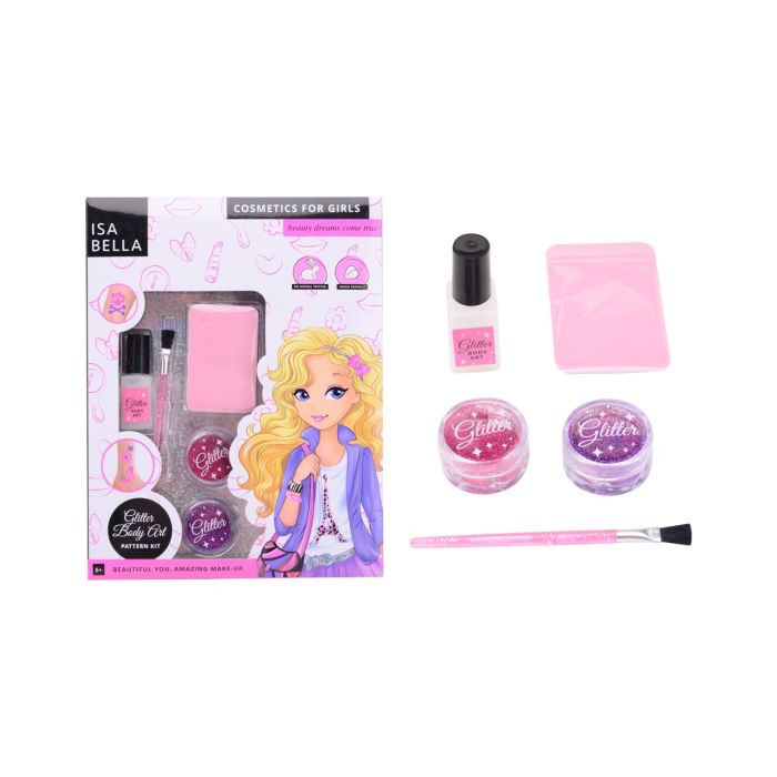 Transformeer jouw woonkamer in een bodyglitter art-studio met de Body Glitter Art set in doosje! Deze uitgebreide set bevat alles wat je nodig hebt om de leukste Body Glitter Tattoo te maken. Met twee vrolijke glittergels (paars en roze), glitterlijm, een kwastje en leuke stencils wordt elke tattoo sessie een feestje. Alles komt in handige potjes, die weer netjes dicht kunnen voor een later moment. Geschikt voor kinderen vanaf 5 jaar. Tijd om lekker te tutten en creatief te zijn!