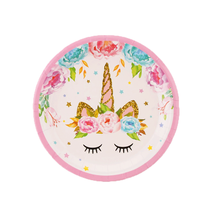 Schattige pastelkleurige bordjes met een afbeelding van een unicorn. De bordjes hebben een doorsnede van 17,5 cm en zijn verpakt per 8 stuks.