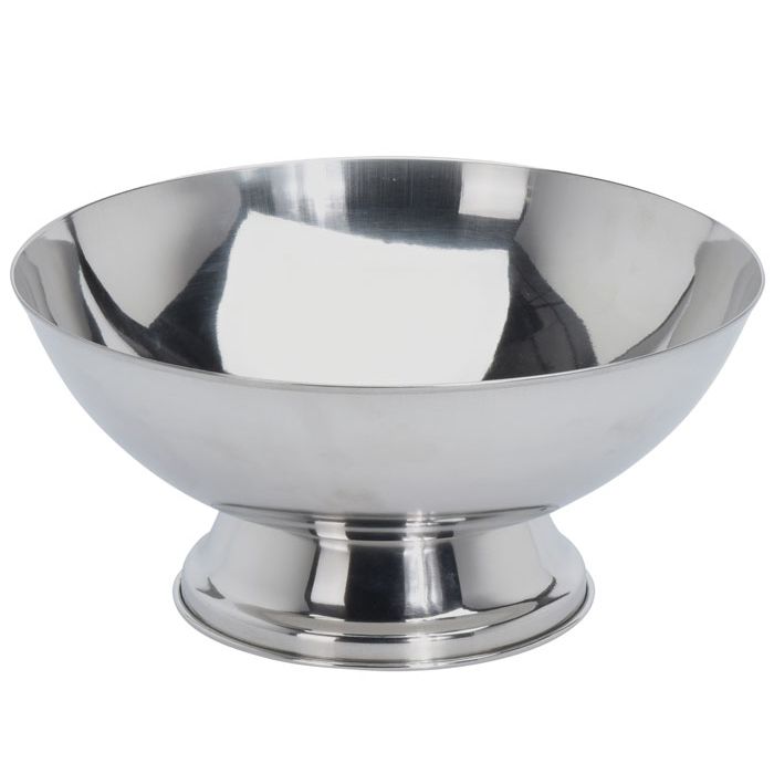 Zilver schaal op voet, perfect voor gebruik als champagnekoeler.