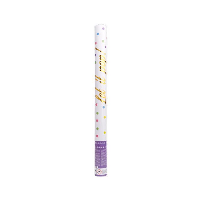 Confetti kanon met gekleurde regenboog confetti. Draai gewoon aan de onderkant en wacht tot het kanon knalt! Kanon is 60 cm lang. Alleen voor buiten gebruik.