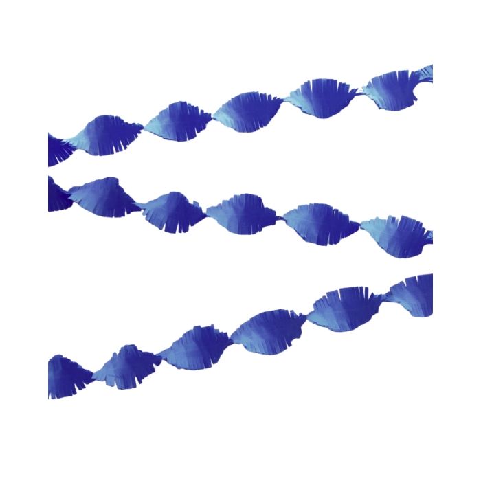 Crepe guirlande slinger in het donkerblauw. De slinger is 24 meter lang en is gemaakt van een brandvertragende crepe, dus ook geschikt voor in de horeca.