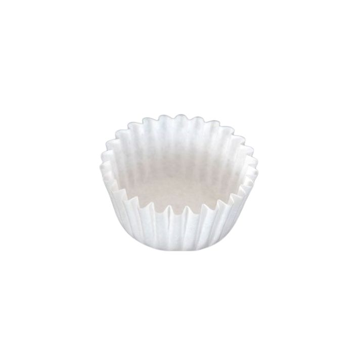 De papieren mini cupcake vorm heeft een dia van 4cm en een hoogte van 2cm. Uitgevouwen heeft het een dia van 7 cm. Verpakt per 200 stuks in de kleur wit.