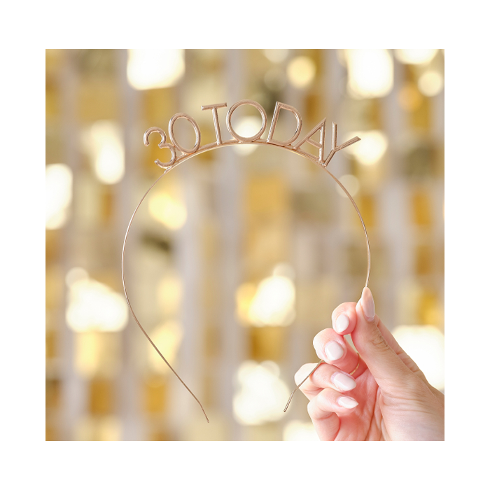 Vier je 30e verjaardag met deze elegante '30 Today' haarband in champagnegoude kleur. Elke verpakking bevat 1x haarband met een afmeting van 16 (h) x 13 (b) cm.