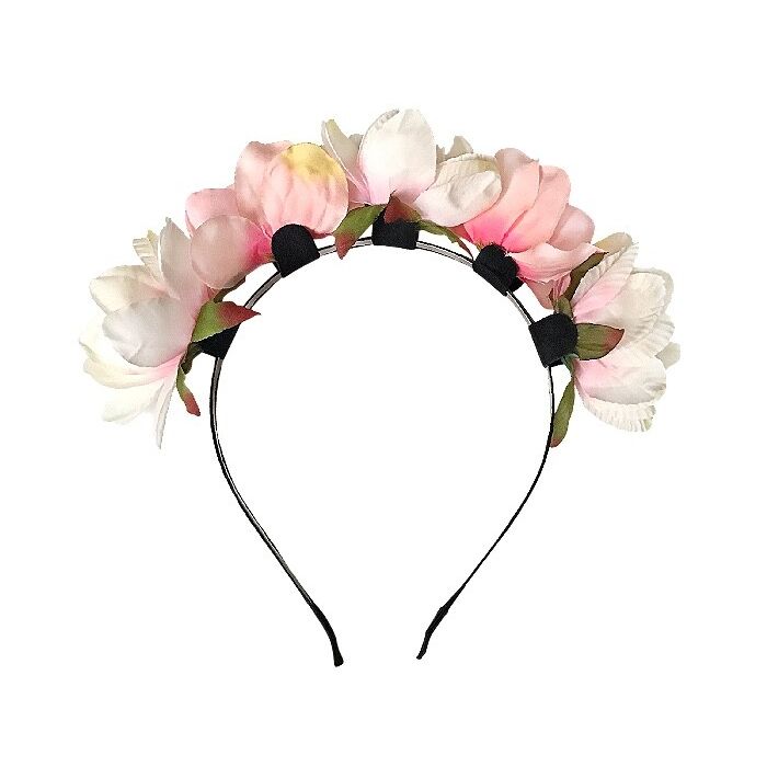 Diadeem met 5 kunstbloemen in roze en witte kleur.