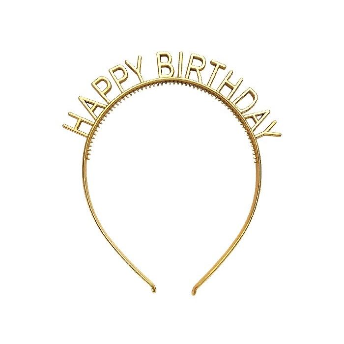 Stijlvolle diadeem met de tekst 'HAPPY BIRTHDAY' in goude kleur.