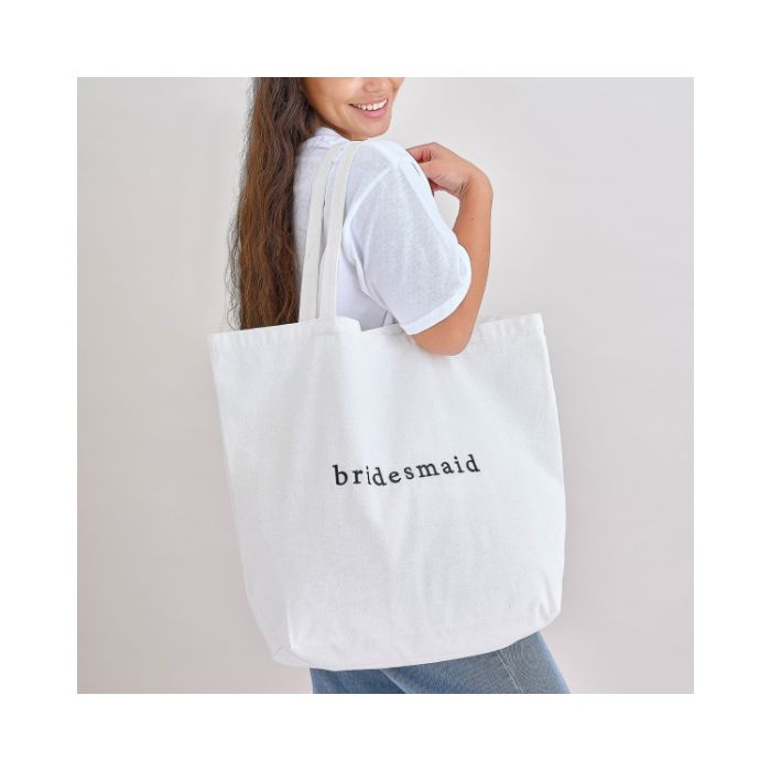 Laat je bruidsmeisjes schitteren met de elegante 'Bridesmaid' canvas shopper van Ginger Ray. Deze ruime tas, met een chique 'Bridesmaid' borduursel, is perfect voor het meenemen van alle benodigdheden tijdens de vrijgezellendag en fungeert ook als een liefdevolle herinnering aan de feestelijke voorbereidingen. Gemaakt van katoenen canvas, heeft de tas een comfortabele afmeting van 55 cm breed en 71 cm hoog, met handvatten van 27 cm lang. Of het nu is voor het vervoeren van spulletjes op de trouwdag zelf of als handige tas voor dagelijks gebruik, deze shopper is een onmisbare accessoire voor elk bruidsmeisje. Verwen jezelf met dit perfecte geschenk en geef je bruidsmeisjes een blijvende herinnering aan jouw speciale dag!
