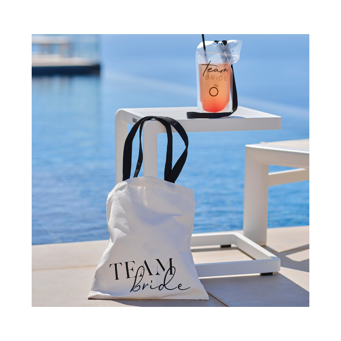Deze Team Bride draagtas, gemaakt van canvas, is perfect om iedereen op de het vrijgezellenfeest cadeau te doen en een mooie herinnering aan het vrijgezellenweekend erna. Elke verpakking bevat 1 canvas draagtas voor vrijgezellenfeesten van 36 cm (H) x 31 cm (B).