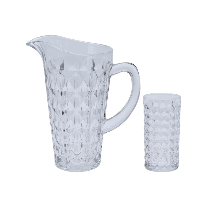 Set van 6 glazen en 1 schenkkan.