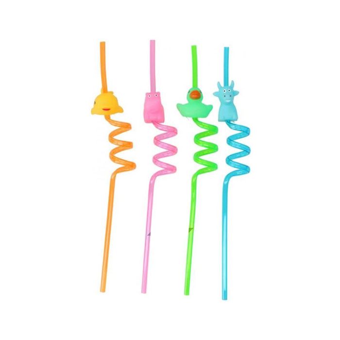 Leuke herbruikbare kronkel rietjes met verschillende dieren. Een verpakking bevat twee rietjes. De rietjes zijn er in verschillende kleuren en soorten en worden door elkaar geleverd.