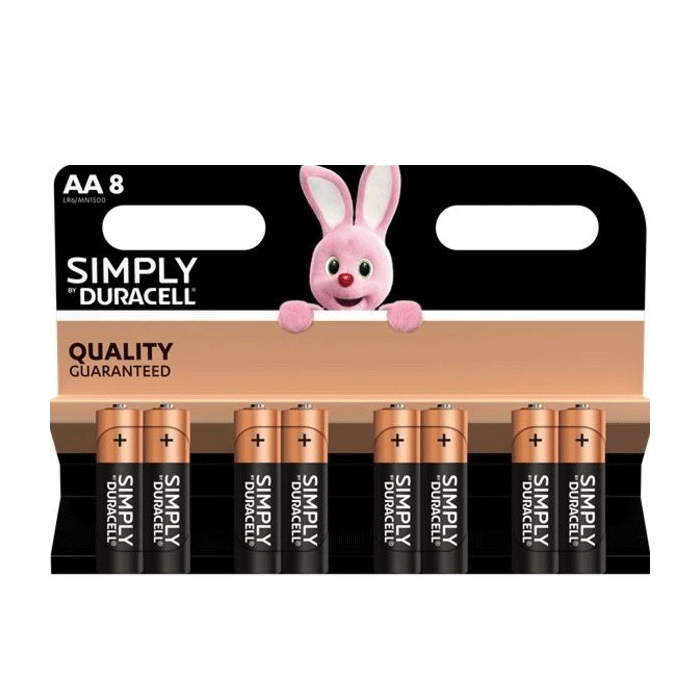 Duracell Simply AA-batterijen, set van acht stuks.