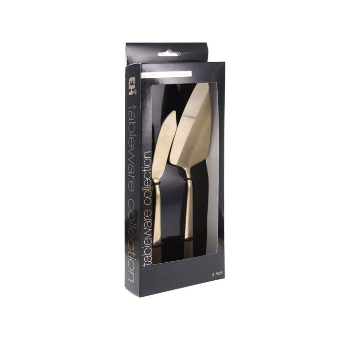 Prachtig taartserveerset van Excellent Houseware voorzien van een PVD coating dat zorgt voor een champagne achtige kleur. Geadviseerd wordt om het bestek met de hand af te wassen.