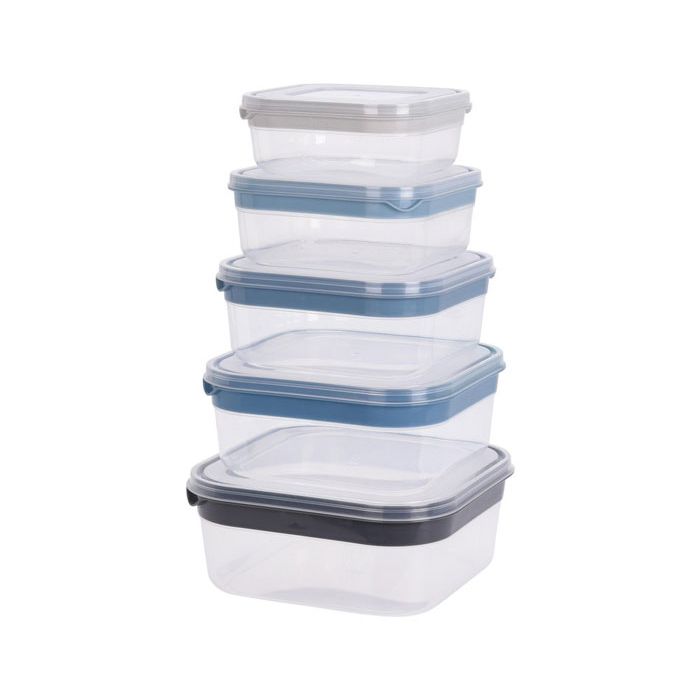 Set van vijf voorraaddozen van het merk Excellent Houseware. De dozen zijn magnetron- en vaatwasbestendig.