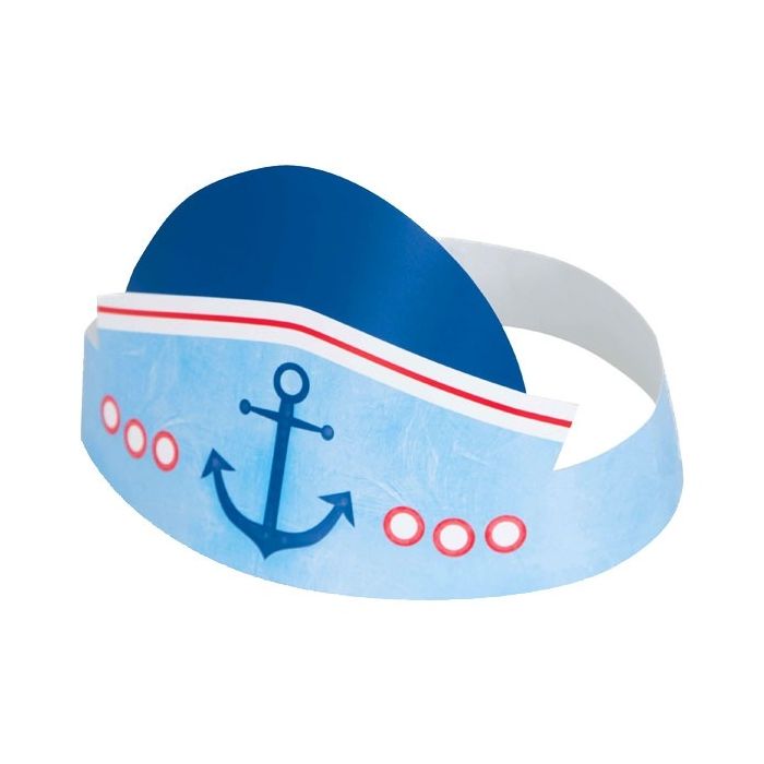 Kartonnen feesthoedjes van '1st Birthday Matroos'. Perfect voor een schattige eerste verjaardagsfeestje van je zoon met een nautisch thema!