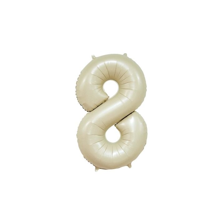 Vier een speciale verjaardag of belangrijk jubileum in stijl met deze schitterende creme folieballon in de vorm van het cijfer acht. Met een indrukwekkend formaat van 86 centimeter vormt deze ballon direct het stralende middelpunt van jouw feestlocatie. De elegante subtiele glans geeft de decoratie een luxe sfeer die perfect past bij elke bijzondere mijlpaal.