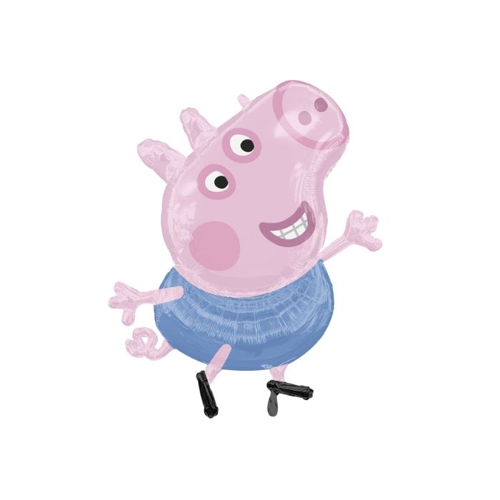 Supershape folieballon in de vorm van George, bekend van de serie Peppa Pig. De ballon heeft een afmeting van 61 x 61 cm en kan worden gevuld met lucht of helium.