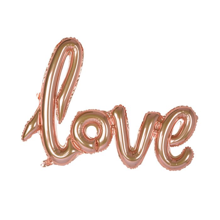 Folieballon in het woord 'love' in roségouden kleur. De folieballon is 119cm breed.