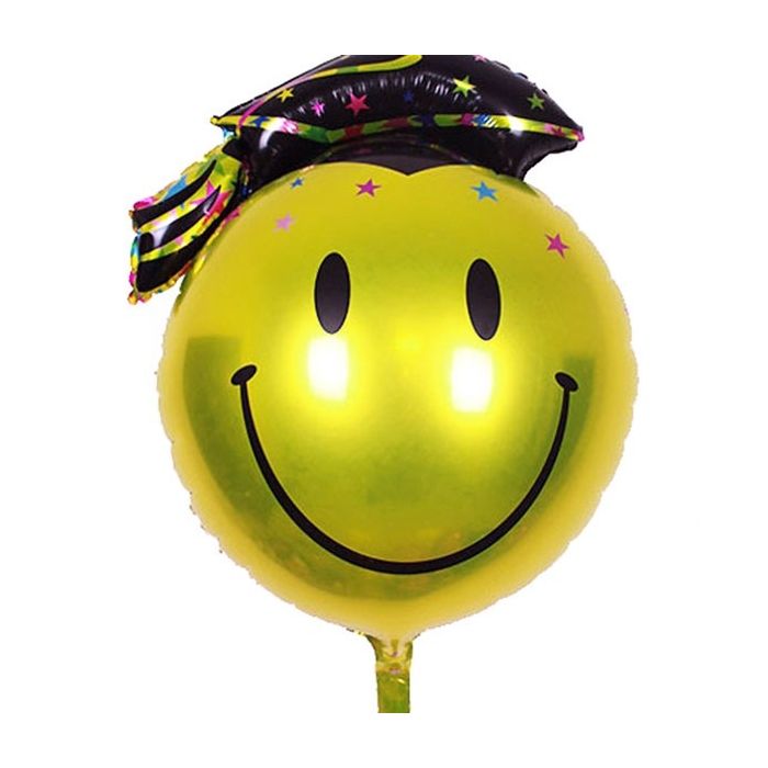 Folieballon in de vorm van een smiley met een geslaagd hoedje. Met deze folieballon ziet iedereen dat er iemand geslaagd! De folieballon is geschikt voor lucht of helium.
