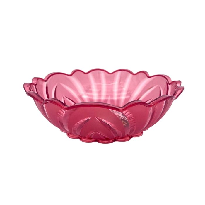 Een prachtige doorschijnend rode fruitschaal van stevig plastic, die prachtig op tafel of in je keuken staat. Ook te gebruiken als decoratie schaal. De schaal heeft een doorsnede van 24,5cm en heeft een hoogte van 8,5cm.