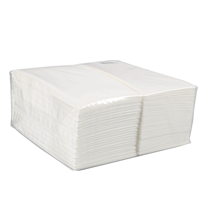Stevige witte 3-laagse servetten die al netjes zijn gevouwen (8 vouwen). Eén verpakking bevat 75 servetten.