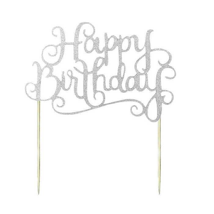 Glitter Cake Topper 'Happy Birthday' Zilver