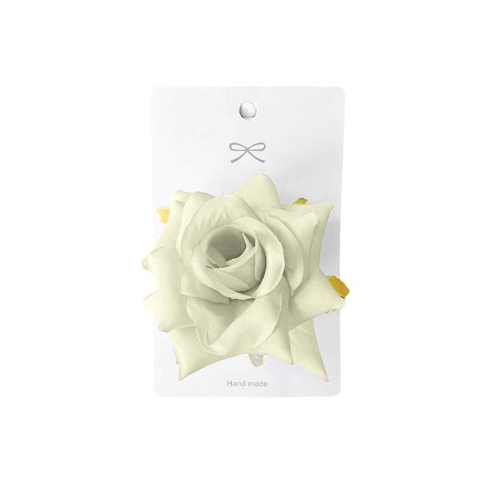 Een mooie witte roos die als haarclip in het haar kan worden gedragen of met de speld als broche op kleding.
