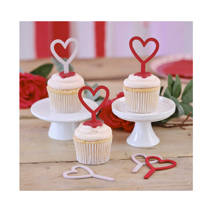 Houten Cupcake Toppers Heart Red & Pink Ginger Ray (6st)