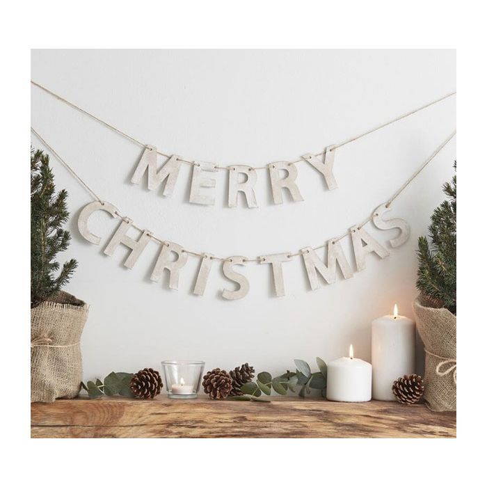 Creëer een rustieke woonkamer met deze houten Merry Christmas slinger van Ginger Ray.