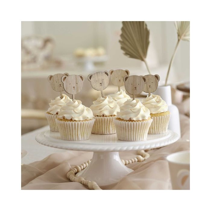 Houten Teddy Beer Cupcake Toppers Ginger Ray (6st)