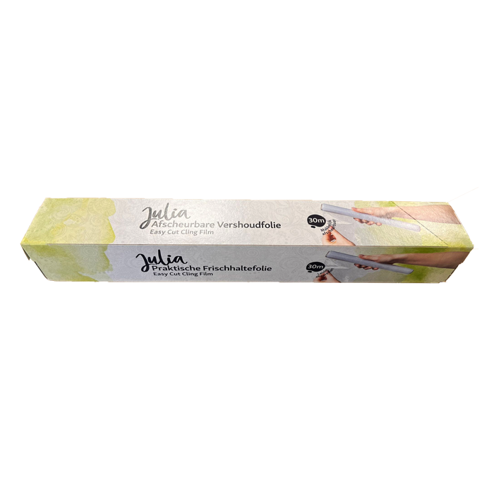 Julia afscheurbare vershoudfolie, houdt uw levensmiddelen (kaas, vleeswaren, groenten en fruit) langer vers. De folie wordt per 30 meter geleverd.