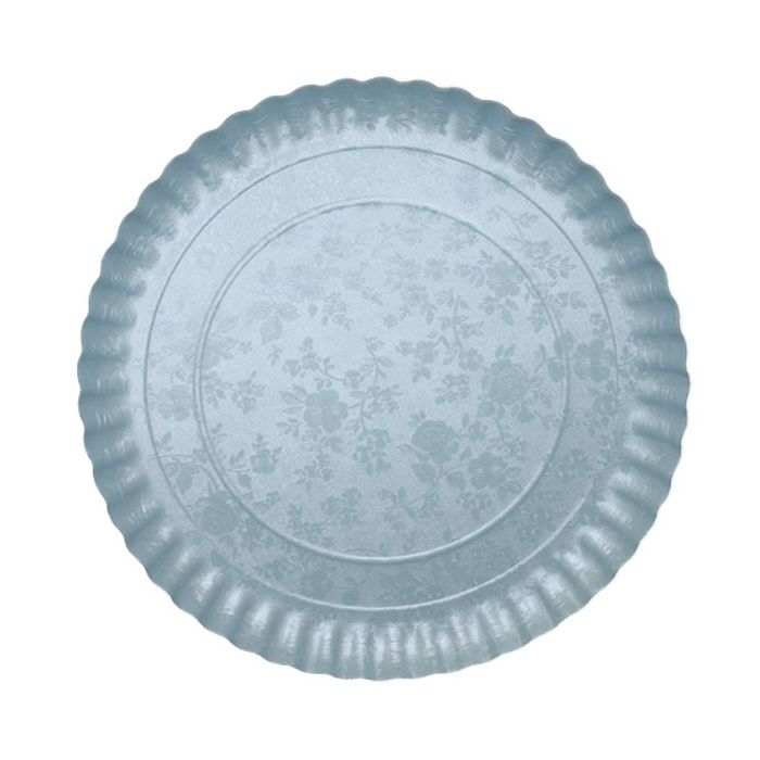 Kartonnen dienblad rond in het blauw met bloemenprint. Het dienblad heeft een dia van ca. 33,5 cm.