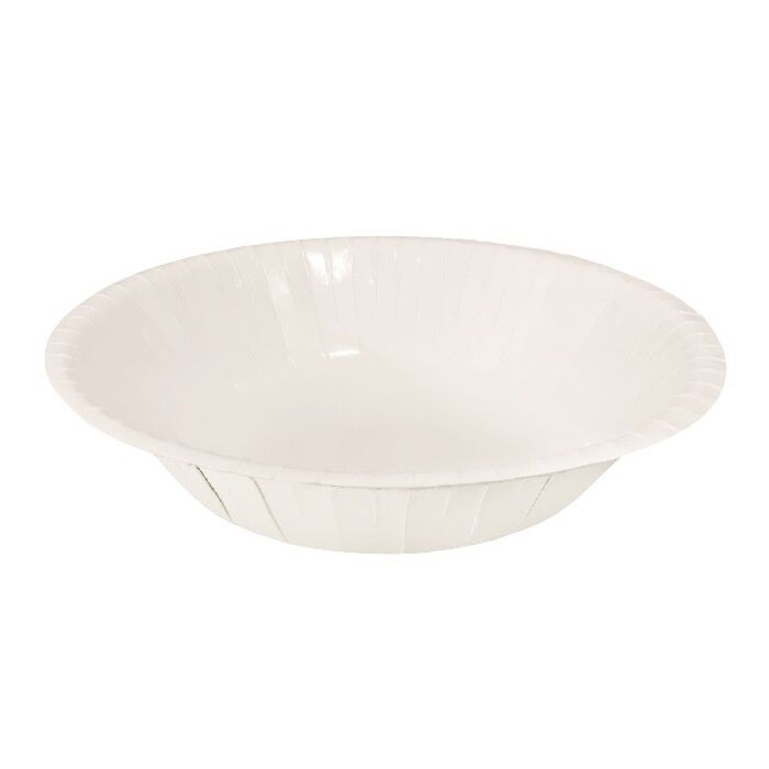 Kartonnen kommen in witte kleur. De kommen hebben een doorsnede (bovenkant) van 18 cm. Een verpakking bevat 20 kommen.