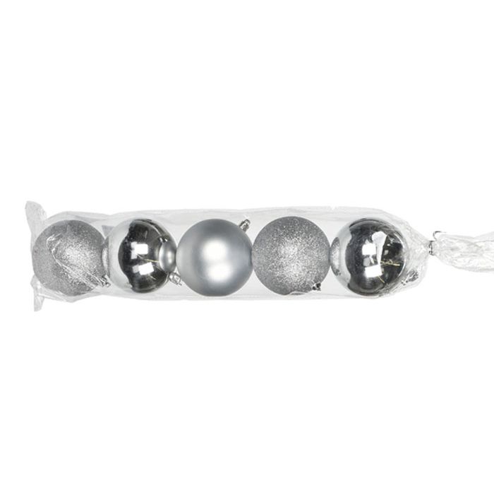 Kerstballen Zilver - 80mm - 5 stuks