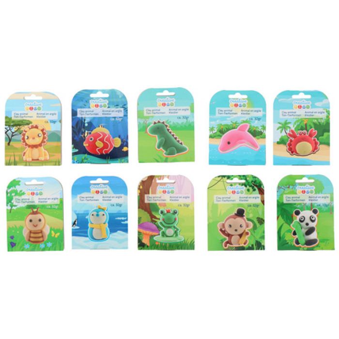 Maak één van de tien diertjes met dit schattige kleisetje. In het setje zitten een potje klei van circa 32 gram met vier verschillende kleuren klei. Verschillende uitvoeringen/kleuren worden door elkaar geleverd.