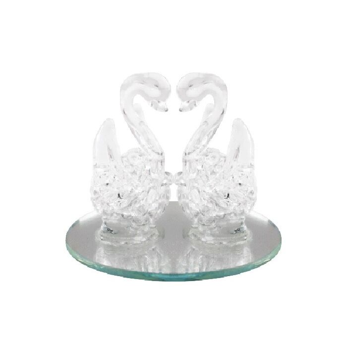 Kristallen zwanenpaartje met zilveren glittervleugels