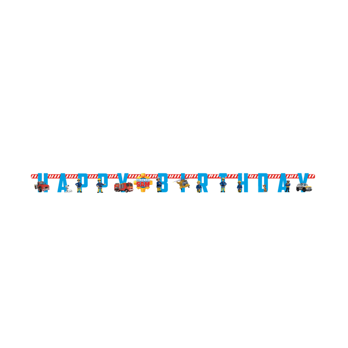 Papieren letterslinger van brandweerman Sam die de tekst 'Happy Birthday' vormen! De slinger heeft een afmeting van 180x15cm.