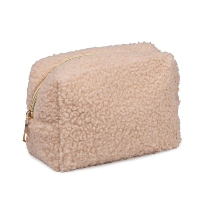 Make-up tas met teddy buitenzijde in creme kleur. Perfect voor je make-up en alle andere goodies on-the-go. De cosmeticatas heeft een afmeting van ca. 17x11x11cm.