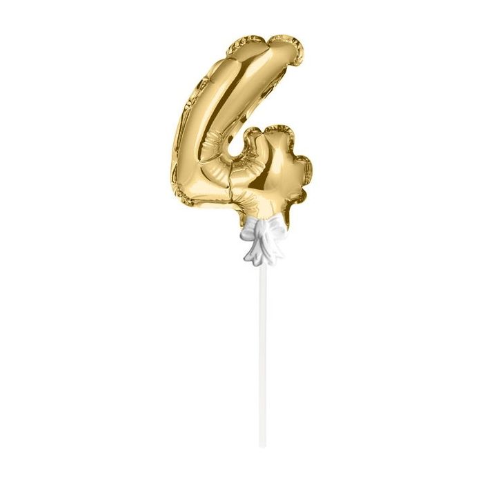 Mini Folieballon Caketopper Goud Cijfer 4