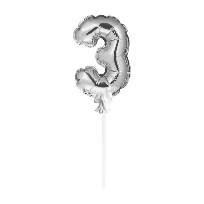 Mini Folieballon Caketopper Zilver Cijfer 3