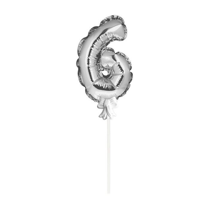 Mini Folieballon Caketopper Zilver Cijfer 6