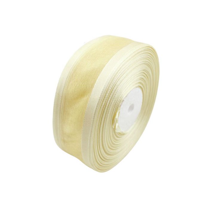 Organzalint van 4cm met een satijnen rand in de kleur creme. Op één rol zit 22,8m lint.